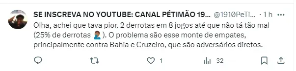 Desde a vitória sobre o Atlético-MG, em julho, o Alvinegro Paulista havia empatado com Internacional, Fluminense, Bahia e Cruzeiro, além de ter sido superado por Fortaleza e São Paulo, um de seus maiores rivais, neste período.