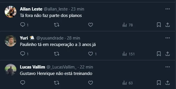 Todavia, caso Mano opte por escalá-lo em fases mais agudas da competição, nada impede que o Corinthians realize a sua inscrição. Vale destacar que Paulinho voltou ao Alvinegro em 2022 e já sofreu duas sérias lesões no joelho.