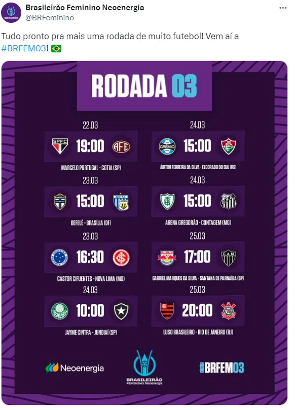 Na próxima segunda-feira (25), mais uma rodada movimentará o Brasileirão Feminino. Jogando no Estádio Luso-Brasileiro, o Flamengo receberá o Corinthians.