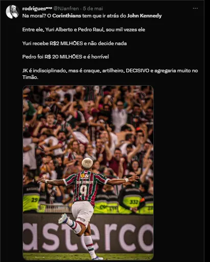 Um dos nomes que passou a ser especulado recentemente foi o do atacante John Kennedy, do Fluminense. Ele vem sendo um nome que pode agitar o mercado no meio deste ano.