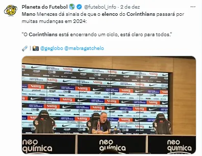 Minha pergunta ao técnico Mano Menezes sobre a reformulação do elenco do Corinthians para 2024 pic.twitter.com/OQm6cA6C89