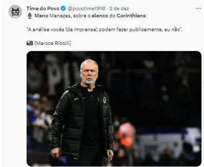 Sobre esse jogo e já planejando a próxima temporada, em coletiva após a última partida do Timão, Mano Menezes, treinador da equipe paulista, já se manifestou deixando claro que não será o desempenho desse duelo que vai definir o futuro de jogadores do elenco.
