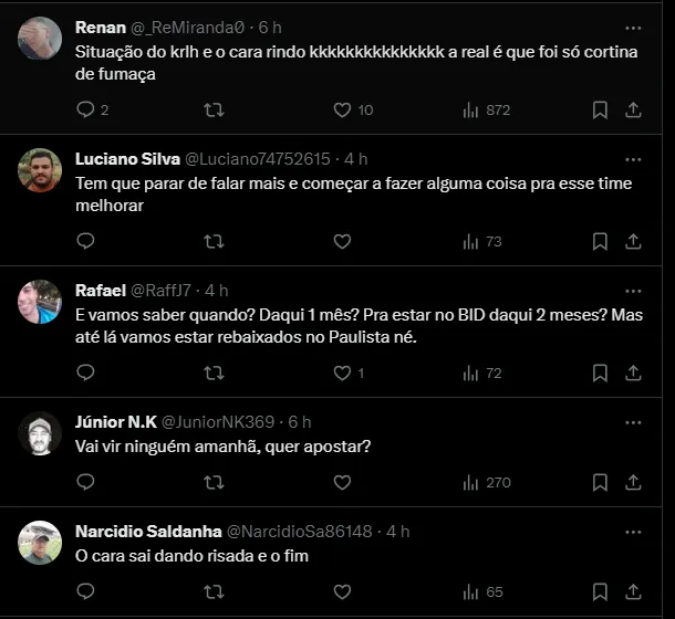 O jornalista Pedro Ramiro perguntou ao presidente do Corinthians sobre a possível contratação do argentino. Todavia, Augusto apenas respondeu: “não, não, vocês vão saber“.