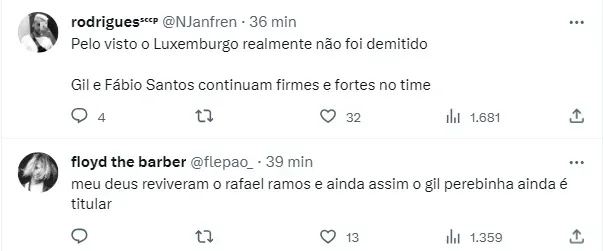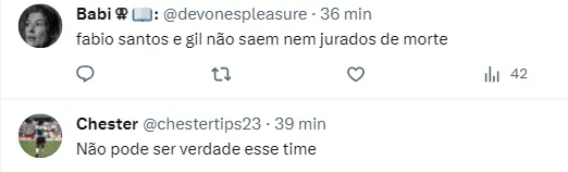 Mas os torcedores do Corinthians não gostaram muito das possíveis mudanças. No Twitter, muitos internautas criticaram que ainda Mano insiste em deixar o zagueiro Gil na equipe, por exemplo, tentar o retorno de Rafael Ramos, além de Fábio Santos, que vem sendo bastante criticado pela torcida do Corinthians.