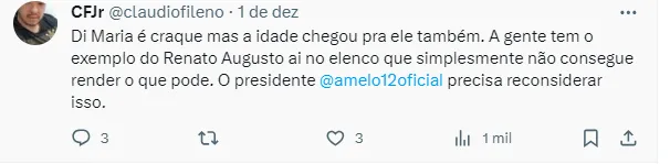 Em entrevista, o comandante afirmou que vai tentar convencê-lo a seguir no Clube Português: “Vamos tentar manter o Ángel Di Maria aqui no clube por mais uma temporada, esse é o plano”, afirmou.