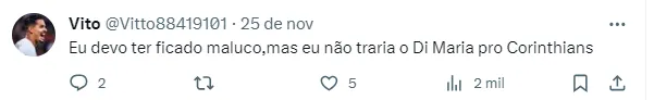 O técnico foi além: “Estamos aproveitando cada jogo e treino com o Di Maria, vamos ver. Nós tentaremos”, completou. O Corinthians segue avaliando nomes no mercado para reforçar o elenco em 2024.