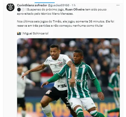 O meia Ruan Oliveira é um dos nomes que tem grandes chances de deixar o Alvinegro do Parque São Jorge ao fim desta temporada. Ele teve uma passagem apagada na equipe.