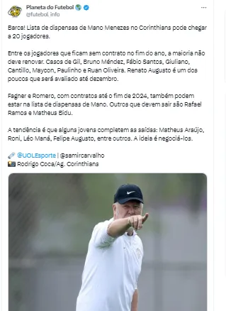Além dele, mais nomes também devem ter o mesmo destino ao fim da temporada e deixar a equipe comandada por Mano Menezes para a temporada de 2024.