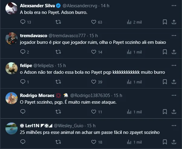 Inclusive, um dos principais motivos das críticas direcionadas ao jogador é o valor pago pelo Clube de São Januário para contratá-lo. Afinal, o valor é o mesmo que o Nantes (FRA) pagou ao Timão no segundo semestre de 2023.