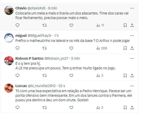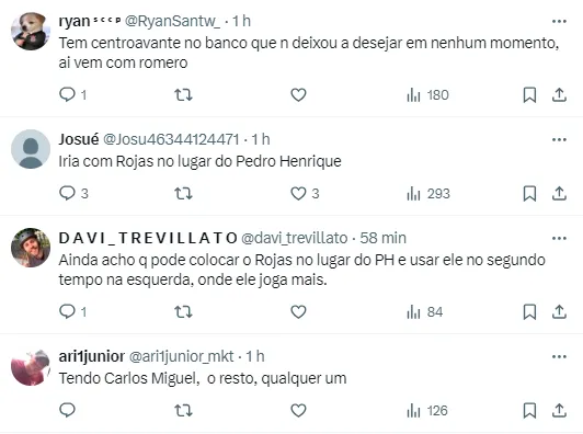 As mudanças não devem parar por aí. Após ir mal contra o Palmeiras, Caetano deve retornar para a reserva e Hugo deve entrar. Quem também vai perder uma vaga nos 11 titulares é Fausto Vera. O argentino que vem sendo muito criticado, deve dar lugar a Maycon, que retorna após lesão.
