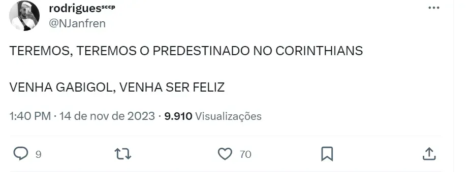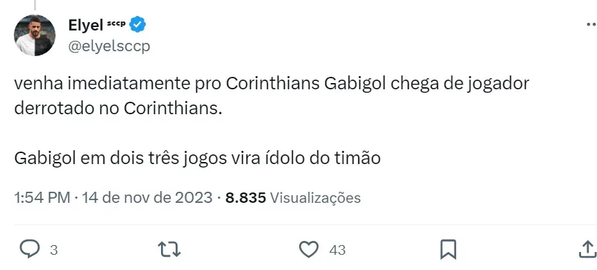 “Fiquei sabendo que o Corinthians vai brigar para trazer o Gabigol no ano que vem, com uma venda de Yuri Alberto”, disse o apresentador no programa da Band desta terça-feira (14).
