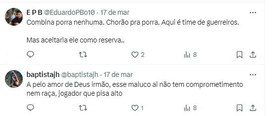 No entanto, o profissional ainda completou e disse que fontes lhe disseram que isso pode se tratar de uma estratégia, por um único motivo. Ele não quer entrar em leilão por sua contratação.