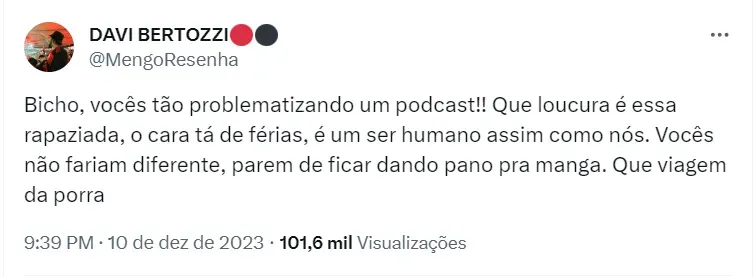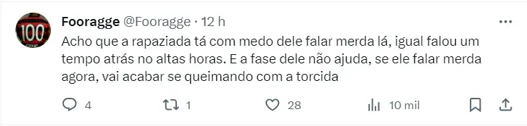 Augusto Melo, durante entrevista à BAND, destacou que ele tem a cara do Corinthians, o que deixou a torcida ainda mais com expectativa de contratação. “Eles tão deixando a gente sonhar”, escreveu. Os Flamenguistas divergem sobre a participação do jogador no podcast, já que pode dar ainda mais munição ao rival, que busca sua contratação.