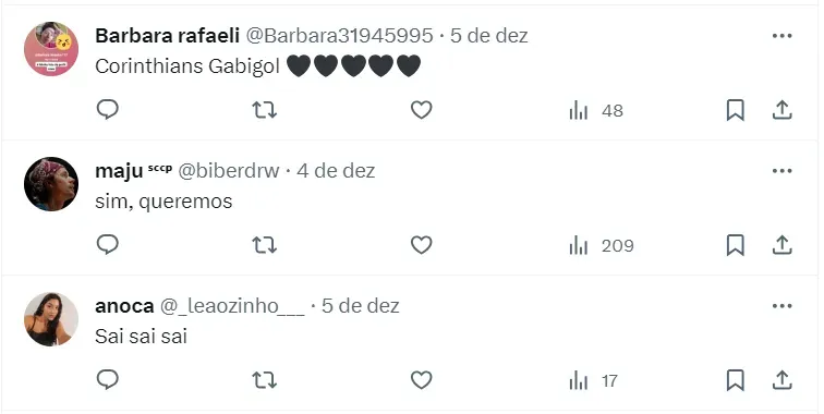 Com a participação no podcast, torcedores do Corinthians vem se mobilizando nas redes sociais com a expectativa que o jogador fale sobre o futuro e a possibilidade de atuar no Timão. “Hoje tem Gabigol dando papo no PODPAH (!) A última vez que ele conversou com Igão, demonstrou que sabe muito o que é ser CORINTHIANS”, escreveu.