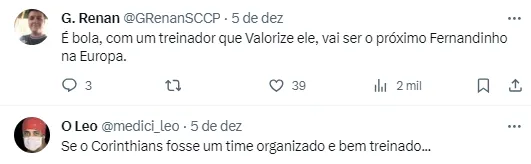 E completou: “Seis meses atrás eu estava na base, jogando Paulista Sub-20. Muita coisa vem acontecendo, subida para o profissional, vivenciar estádios lotados. Espero estar respondendo muito bem. Estou muito feliz, muito orgulhoso de vestir a camisa do Corinthians. Estou vivendo um sonho”.