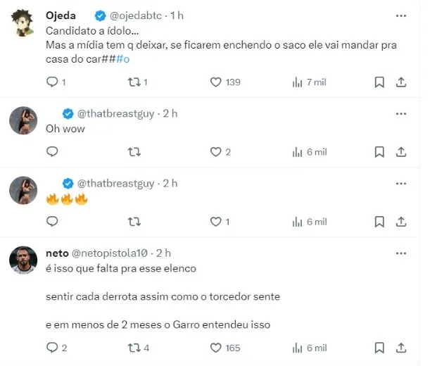 O jogador precisou, inclusive, ser consolado por Fabinho Soldado, executivo de futebol. Naquela noite, inclusive, o atleta foi um dos poucos que recebeu elogios dentro de campo por parte da torcida alvinegra.