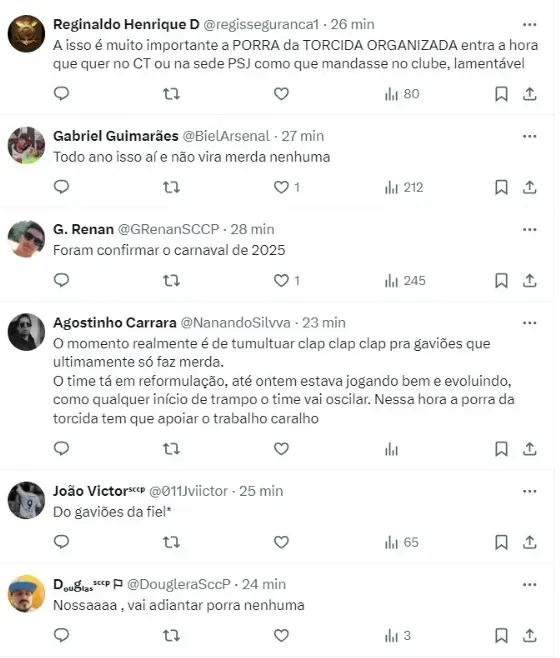 Detalhes do que foi falado na reunião no Parque São Jorge ainda não foram revelados. A Gaviões da Fiel, como de costume, deverá publicar uma nota detalhada sobre o assunto.