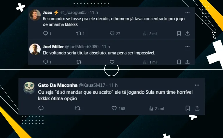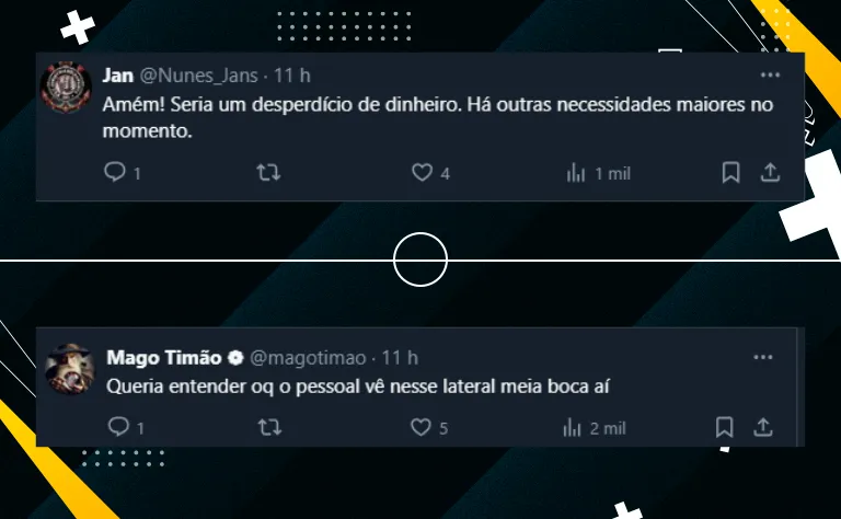 Por fim, após a declaração de Arana, o tema bombou entre corintianos nas redes sociais e gerou enorme divisão. Enquanto uns lamentaram, outros comemoram o fato de Arana não voltar. Confira: