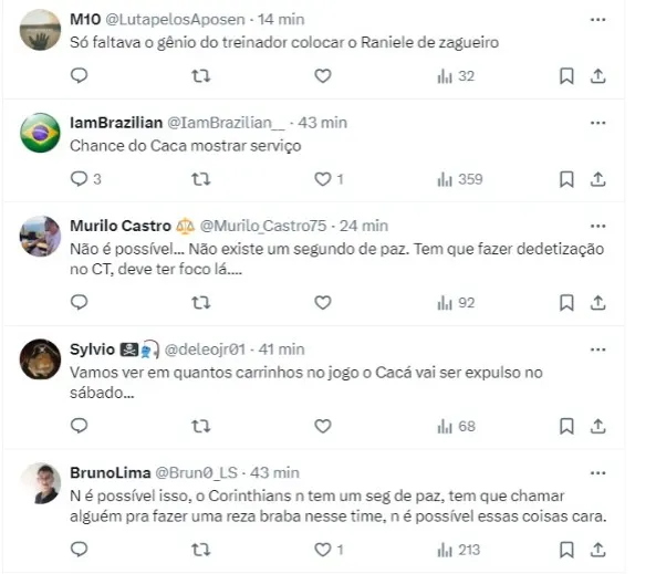 Na primeira rodada do Brasileirão, o Timão ficou no empate por 0 a 0 com o Atlético Mineiro. Já no segundo, o Corinthians enfrentou o Juventude, no Alfredo Jaconi, e acabou derrotado por 2 a 0.