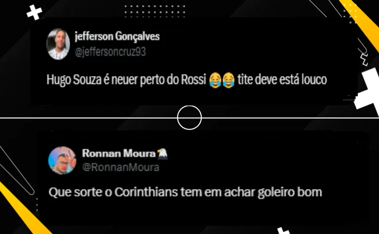 Aliás, o segundo citado marcou seu segundo gol em dois jogos e foi muito elogiado por boa parte da Fiel. Falando em destaques, mais uma vez Hugo Souza se destacou na meta corinthiana.