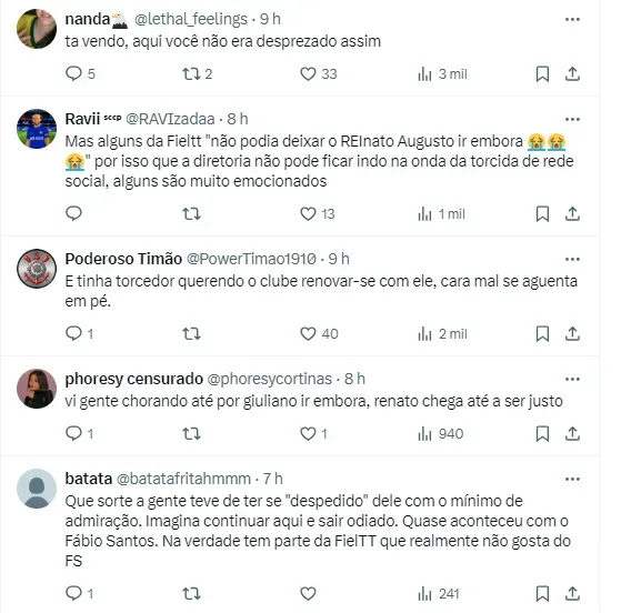 Reações da Fiel sobre a situação do ex-camisa 8