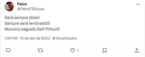 Ainda assim, Ralf segue com moral no Clube Goiano. Isso porque aos 39 anos teve o seu contrato renovado por mais uma temporada e irá seguir na equipe. Ele se destacou muito em 2023 e foi até eleito o melhor volante do Campeonato Goiano.