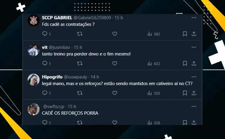 Apesar de somar apenas 12 pontos na tabela, o Timão aparece na 17ª colocação e ainda não está completamente afundado. Não à toa, o mercado de transferências se tornou uma esperança ao torcedor.