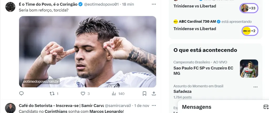 A informação é do setorista Samir Carvalho, que cobre o Timão. Entretanto, entende-se que qualquer tipo de negociação do camisa 9 do Peixe com o Corinthians é complicadíssima, até pela rivalidade.