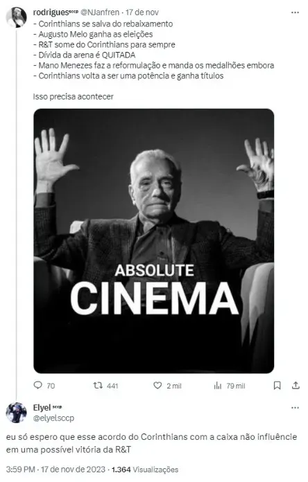 “Então acredito que esse elenco que não deu certo precisa fazer uma reformulação para no próximo ano o Corinthians voltar a ser o Corinthians“, disse o ex-atacante, deixando claro que o extracampo não deve influenciar:
