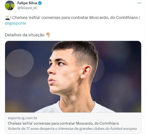 O Chelsea está de olho na situação do volante Gabriel Moscardo, do Corinthians, mas o Timão, desta vez, vez jogo duro para liberar o seu jogador e não deu avanço nas investidas do time inglês pelo jovem e agora as ações web algumas consequências perante a cúpula londrina.
