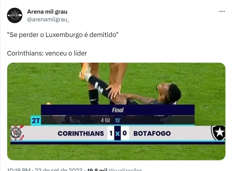 Na vitória contra o Botafogo, o treinador Vanderlei Luxemburgo foi vaiado pela torcida corintiana antes da bolar rolar na Neo Química Arena, mas o treinador não dá bola para isso. Nesta reta final de temporada, ele tem como objetivo vencer a Copa Sul-Americana e, na próxima terça-feira (26), enfrenta o Fortaleza pelo jogo de ida da semifinal da competição continental. É a última chance de título para o Clube do Parque São Jorge em 2023.