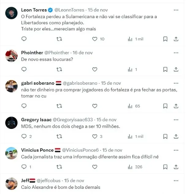 O Leão do Pici quer cerca de R$ 50 milhões para negociar o meio-campista, mas segundo informações do jornalista Felipe Barros, a equipe aceitou valores na casa dos R$ 32 milhões.