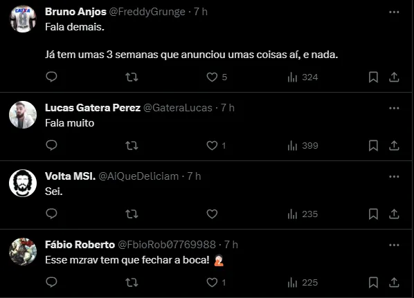 “Depois falam que falo demais. Quando falei isso no programa do Neto, que nossa camisa valeria mais de R$ 200 milhões, deram risada. Vai ser maior do que isso. Isso é a credibilidade que estamos passando. Minha equipe vai ser integrada por profissionais, pessoas técnicas”, disse Augusto Melo na ocasião.