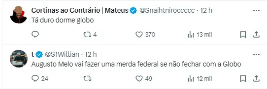 Já a Globo realizou a proposta para que o Timão volte para a Libra e que seus jogos passem na TV aberta, além de Sportv e Premiere. A companhia de Roberto Marinho vem sofrendo para convencer a cúpula corinthiana a fechar o acordo. Augusto Melo vem tentando fechar o maior acordo possível.