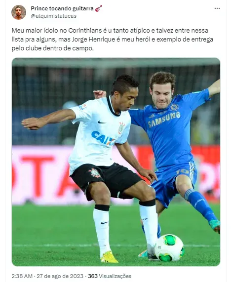 O Corinthians viveu uma época muito vitoriosa entre 2009 e 2013. O ponto alto dessa fase foi em 2012, quando a equipe venceu a então inédita Copa Libertadores da América e também o Mundial de Clubes. Um dos jogadores que foi muito importante neste período foi o atacante Jorge Henrique, que defendeu a equipe durante cinco temporadas.
