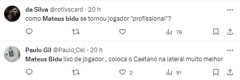 Mano fez uma análise do desempenho do lateral: “Bidu se portou bem, até cresceu no segundo tempo. Provavelmente estava com um pouco de ansiedade e nervosismo em função do último jogo, dessa coisa de precisar mostrar que tem capacidade, isso às vezes inibe um pouquinho”, iniciou.