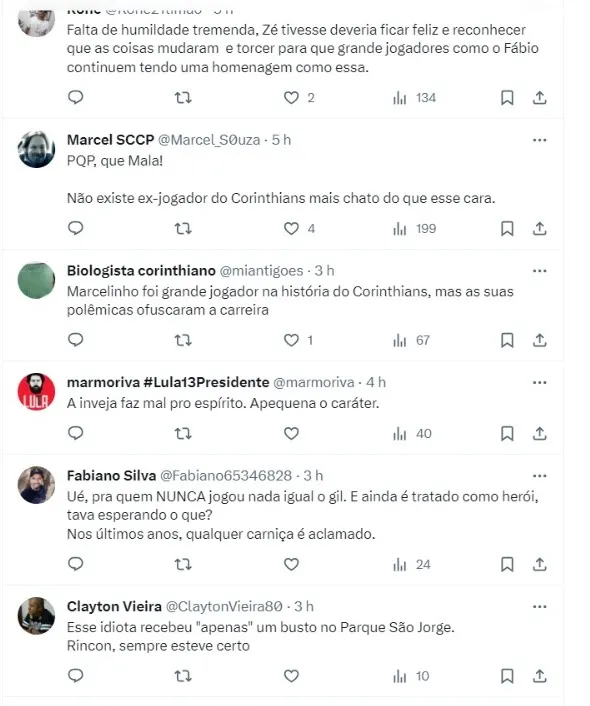 “Minha despedida foi ‘vai ter jogo no Pacaembu, você comparece lá’. E aí, não fui convidado para almoçar no hotel, estar com os jogadores. Peguei minha chuteira, minha roupa estava lá, fui bem recebido pelos jogadores. O treinador (Mano Menezes) era o mesmo que está atualmente”, iniciou dizendo magoado na Rádio Marcelinho Carioca.
