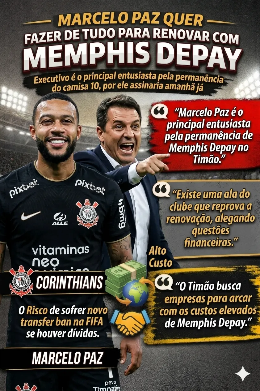 “Ele quer que Memphis continue por aqui, o problema é que a gente sabe quanto isso custa. A diretoria do Corinthians entende que sem uma empresa pra pagar o que custa o Memphis Depay, não tem condição de renovar“, disse.