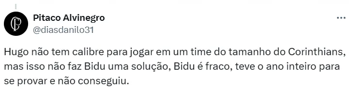 O Corinthians não vem tendo um bom início de temporada e isso é reflexo da fase de alguns jogadores. Como é o caso de Matheus Bidu, contratado junto ao Cruzeiro. O lateral-esquerdo não atendou as expectativas da diretoria.