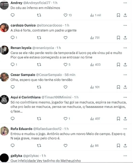 Esse foi o primeiro gol do jogador com a camisa do Timão. Porém, ao fazer o tento, Matheuzinho sentiu o tornozelo e caiu no gramado pedindo atendimento médico.