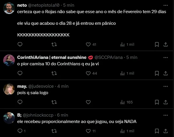 “Ele já não é mais jogador, pegou as malas e foi embora. E aí vão falar alguma coisa, mas é porque não pagaram o que era pra pagar ele. Então, Rojas não é mais jogador do Corinthians”, cravou Back.