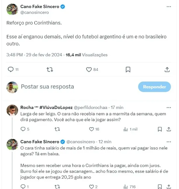“O que o Cássio já mandou de gente tomar no c* hoje é brincadeira! E com razão! Yuri Alberto, Maycon, Fausto Vera, Rojas… não dá!” criticou Benja naquela ocasião, inflamando também comentários da Fiel Torcida.
