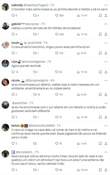 Após a partida, um vídeo viralizou muito nas redes sociais, onde um torcedor do Timão encontra o jogador em seu carro na rua, fazendo cobranças pesadas, com xingamentos e pedidos de ‘vamos jogar bola’.