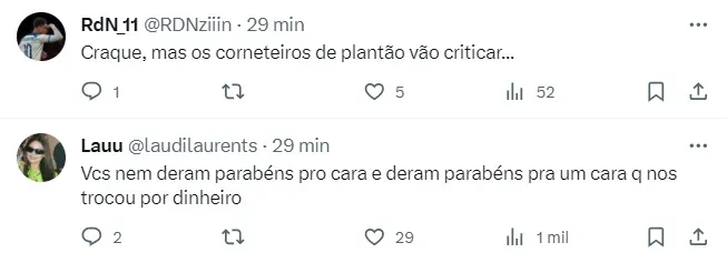 “Eu vejo essas coisas com bastante naturalidade. Na verdade, é a malvada expectativa. Porque quando ela é muito alta, você tem a exigência de que a curto prazo o jogador entre e resolva todos os problemas que a equipe estava tendo”, afirma.