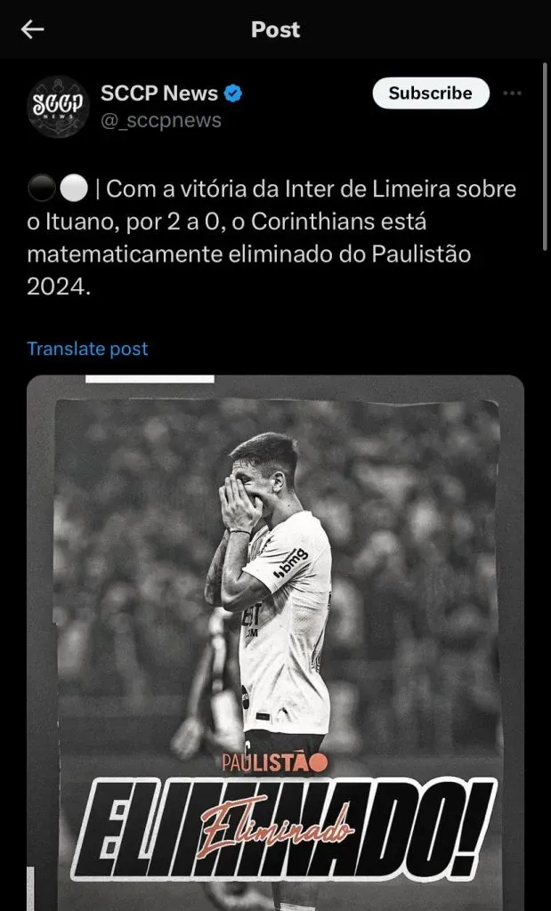 Corinthians eliminado do Paulista