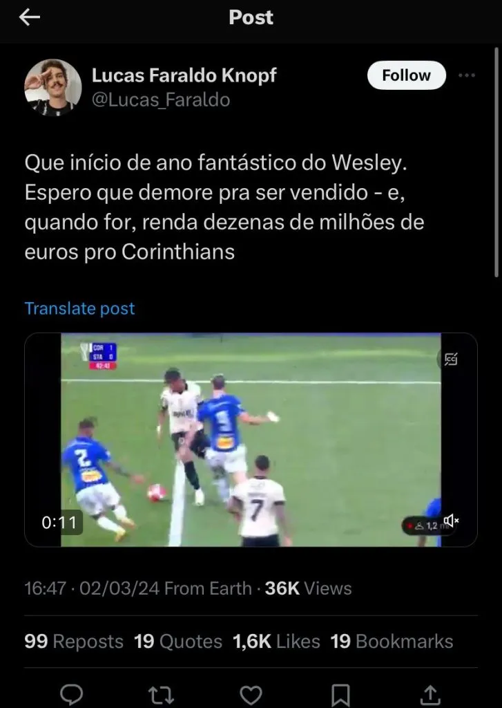 Ainda falando sobre o mercado, se internamente Gabigol voltou a interessar o Corinthians, após a conquista do Flamengo pela Taça Guanabara, o presidente do Clube Carioca deu um novo rumo para a história do camisa 10 rubro-negro.