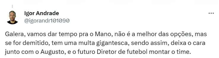 Falando de Corinthians, Augusto Melo deve ir ao Mercado da Bola com força total e é especulado ao menos 10 reforços, além das saídas e renovações. A ideia é uma grande reformulação no elenco corinthiano.