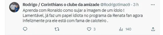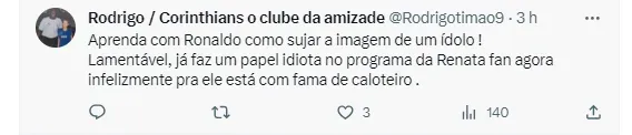 O ex-jogador queria se candidatar ao Conselho Deliberativo para as eleições deste ano, mas acabou sendo surpreendido com a resposta. De acordo com o Globo Esporte, Ronaldo foi vetado da candidatura e o motivo surpreendeu. A publicação informou que ele apareceu como inapto na Comissão Eleitoral por estar inadimplente. Giovanelli não estaria pagando a mensalidade do plano de associado há mais de três anos.