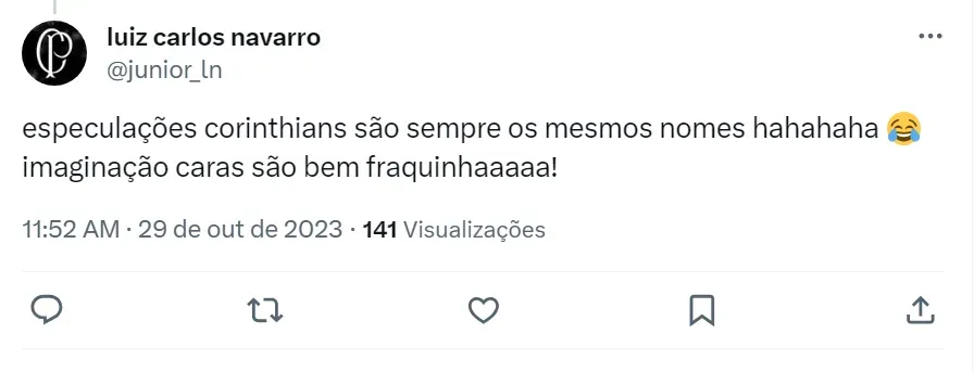 “Haveria necessidade de um investimento superior a 10 milhões de dólares (quase R$ 50 milhões na cotação atual), algo fora da realidade corintiana”, completou Jorge Nicola em seu canal no Youtube.