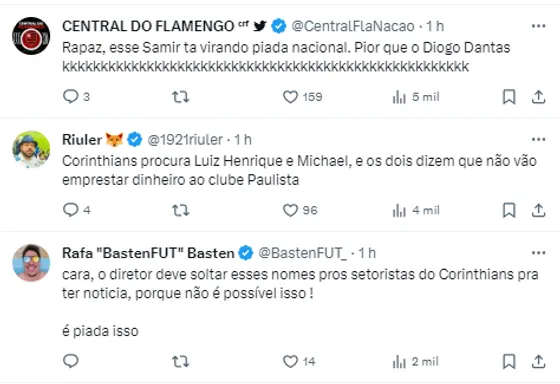 Com os rumores, o nome do ex-flamenguista acabou chegando no trending topics do X (antigo Twitter), e a torcida corintiana também comentou sobre a possibilidade.